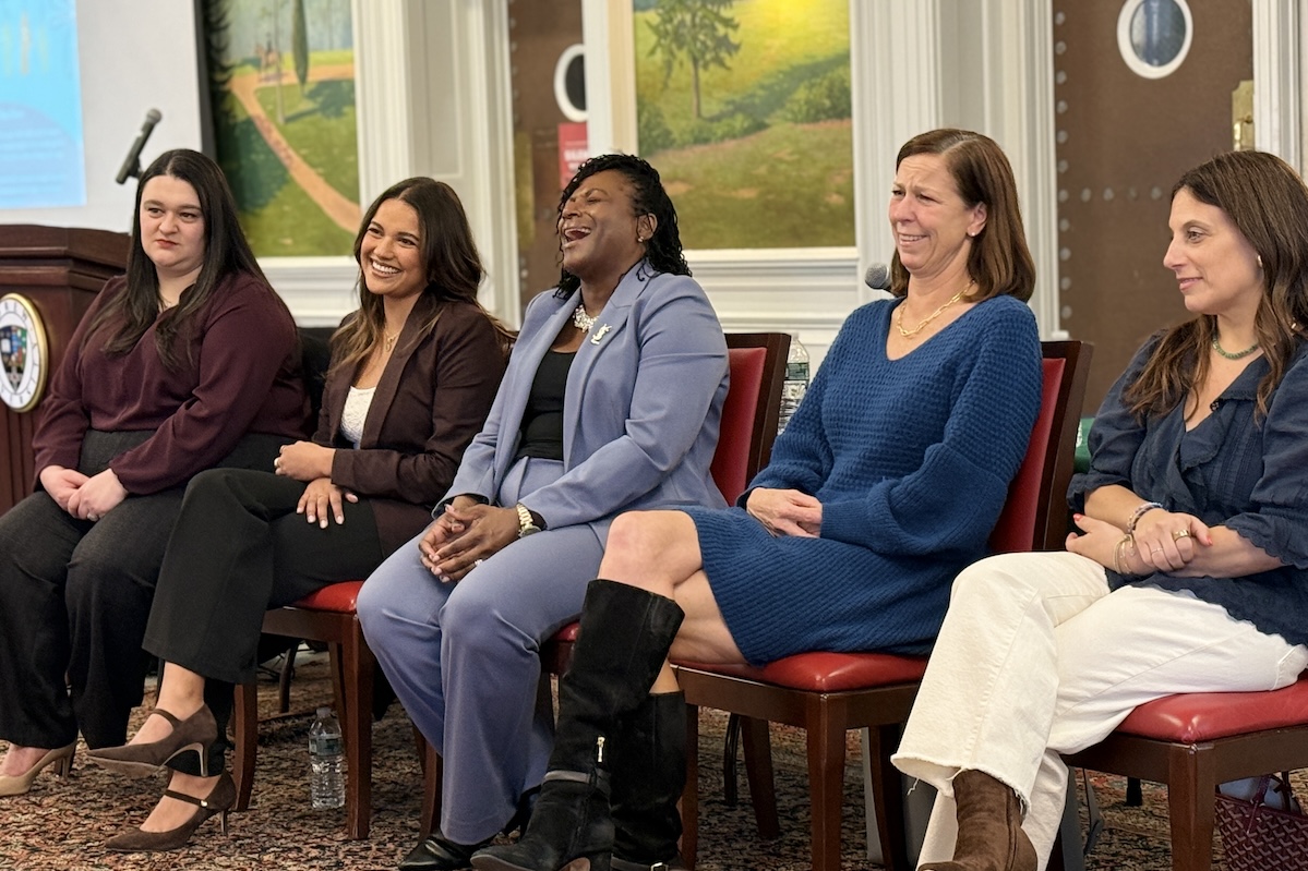 Moderated by Mecca Madyun, faculty director of civically engaged teaching & learning and assistant professor of civic engagement, the discussion included Allison Bardon, senior director of mission advancement at the Madison Area YMCA and Madison Chatham Coalition; Donnette Brown, Esq., founder of Donnette Brown Law; Dr. Elizabeth Fagan, mayor of Summit, NJ; Katherine Anne Ganger C’16, G’17, EMT and eighth-grade English teacher; and Monica Madera, senior program coordinator at the Center for Latino Arts & Culture, Rutgers University.