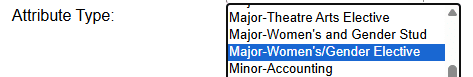 - Reduces the amount of cross-listing. By using attributes, the same course regardless of subject can count in multiple majors and minors without cross-listing. Coding by attribute allows for more flexibility in curriculum set up and better logic for the degree audit negating common issues like departments and programs forgetting to include the subject codes of all possible cross-lists in their catalog page and students registering for the “wrong” one and it does not automatically pull into the requirement in Ladder.