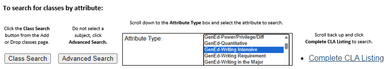 - if a course fulfills a general education requirement (CLA) or a requirement that spans many subject areas